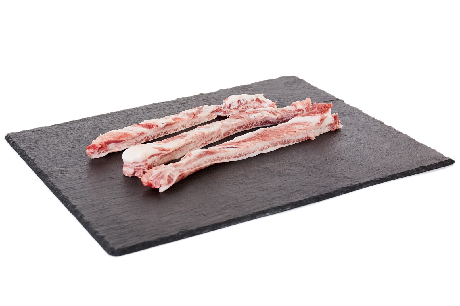 Se trata de piezas muy veteadas y con bastante proporción de grasa, lo que les confiere una gran jugosidad y sabor. La carne intercostal se extrae de las costillas del cerdo, exactamente de la zona intercostal.
