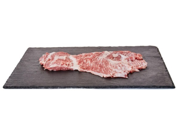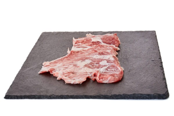 DESCRIPCIÓN: De cada cerdo ibérico extraemos dos excelentes piezas de secreto ibérico o cruceta, que se sitúan entre la paletilla y la panceta del animal, o lo que se llama la zona de la axila.